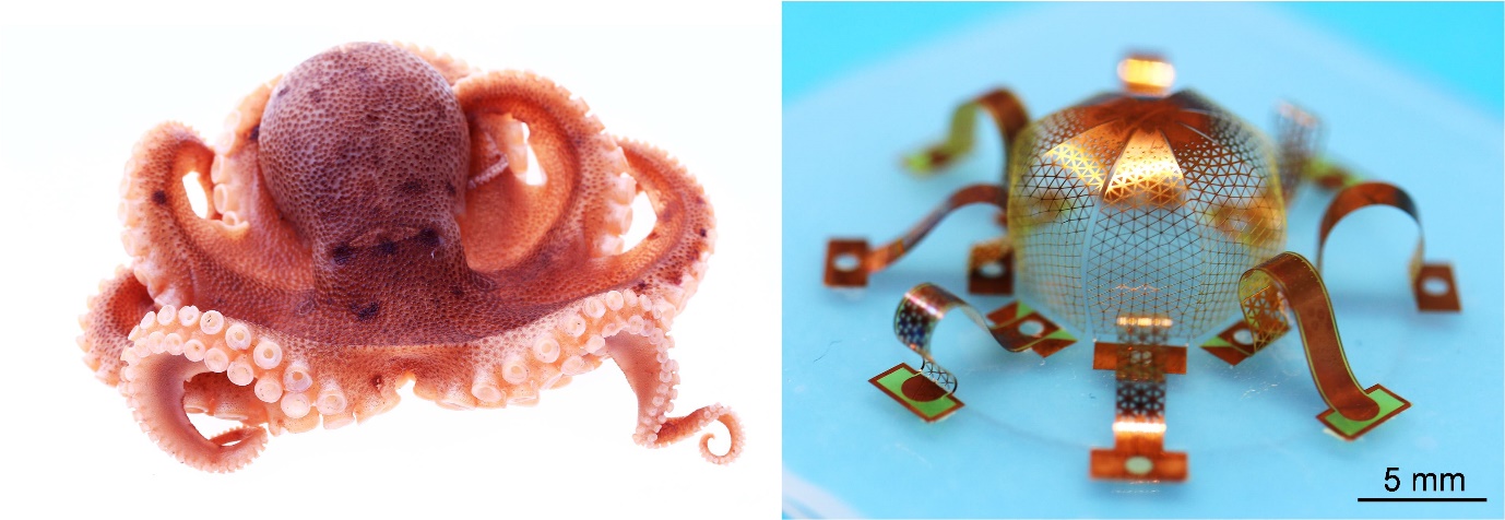 Tsinghua researchers used microlattice designs to create a 2D template that could be folded into this millimeter-scale octopus.