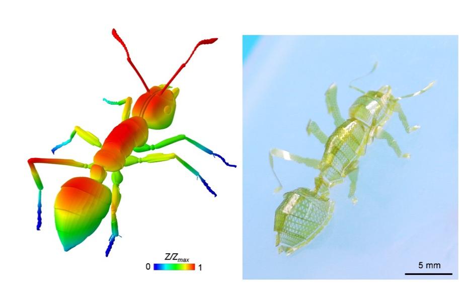 A Tsinghua team designed this ant, which is formed from more than 4,000 microtriangles and almost 8,000 microribbons.