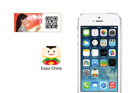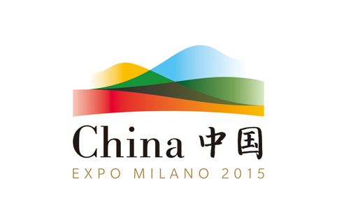 中国馆标识(L0GO)用线与面勾勒出大自然的轮廓和曲线,蓝色代表天空,绿色代表田野,金色代表粮食,红色代表人和生命。起伏的线段富有韵律,形似中国馆主体建筑的轮廓。透叠的图形寓意世间万物和谐共生、天人合一的传统思想。中国馆标识、色彩系统及水墨绘画辅助图案,经过拆分重组,提供了一个可延伸的设计结构。标识体现了“天、地、人、和”的整体设计的理念,其设计语言也与米兰世博会的主标识相呼应,象征东西方文明的交融。