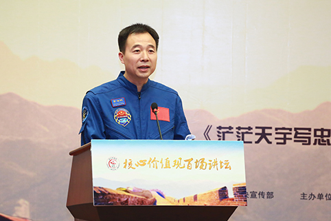 景海鹏做客核心价值观百场讲坛。记者 苑 洁 摄