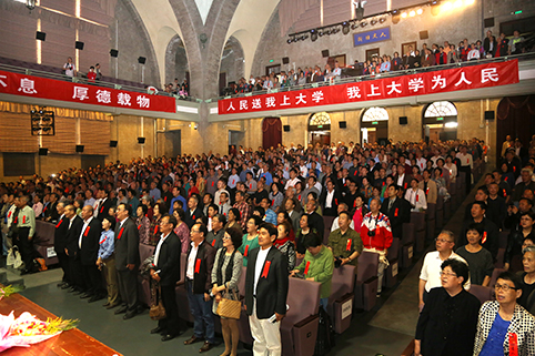 大会上,在一位校友的带动下,大家齐声念出了当年铭刻于心的豪言壮语“人民送我上大学,我上大学为人民”。 回首青葱年华,承载沉雄岁月。大家表示,将继续为母校和国家发展携手前行。