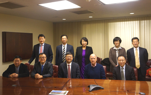 陈吉宁一行会见伯克利加州大学校长杜宁凯(前排右二)和加州大学总校校长珍妮特•纳波利塔诺(前排左二)。