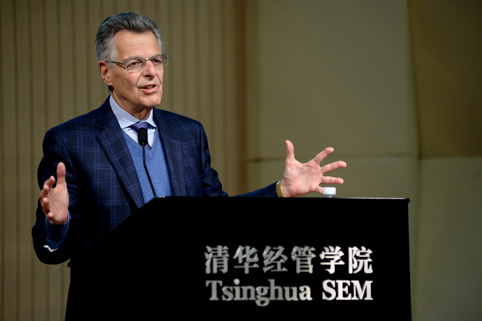 迈伦•斯科尔斯教授在清华经管学院发表演讲。