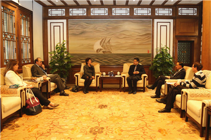 图为陈吉宁会见理查德森教授。记者 苑洁 摄