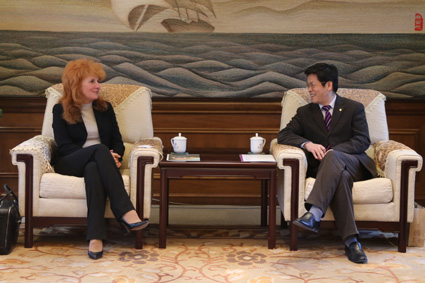 图为邓卫会见瓦拉克教授。记者 苑洁 摄