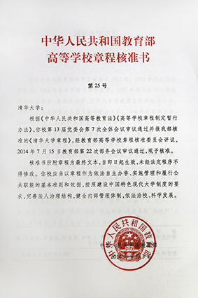 清华新闻网9月30日电(特约记者 郑言实)近日,我校收到《中华人民共和国教育部高等学校章程核准书》(第25号)。这标志着《金沙集团3354cc章程》已经依法依规完成制定、核准程序,从即日起生效。