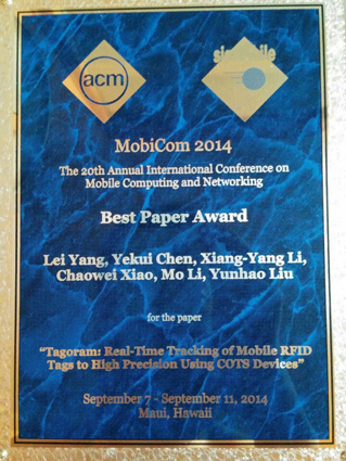 软件学院刘云浩团队获ACM移动与无线通信年会最佳论文奖