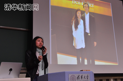 图为余莹做演讲。研通社记者 谢奇珂 摄