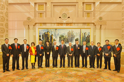 中共中央政治局委员、国家副主席李源潮在人民大会堂湖南厅亲切会见了“中国侨界杰出人物”荣誉称号获得者。照片来源:中国侨联网
