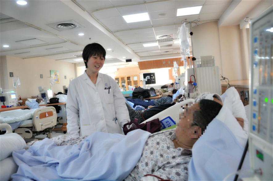 清华长庚医院三楼最里面是肾透析室,肾病患者一人一床,安静地接受着血液过滤,机器的警告音时不时地响起。一位老人走到透析室的中央,“我想给大家唱一首歌。”她说,名字叫《我愿把生命交给你》,一下子吸引了所有人的目光,大家都在听老人诉说对生命的感恩、对医生的敬意。