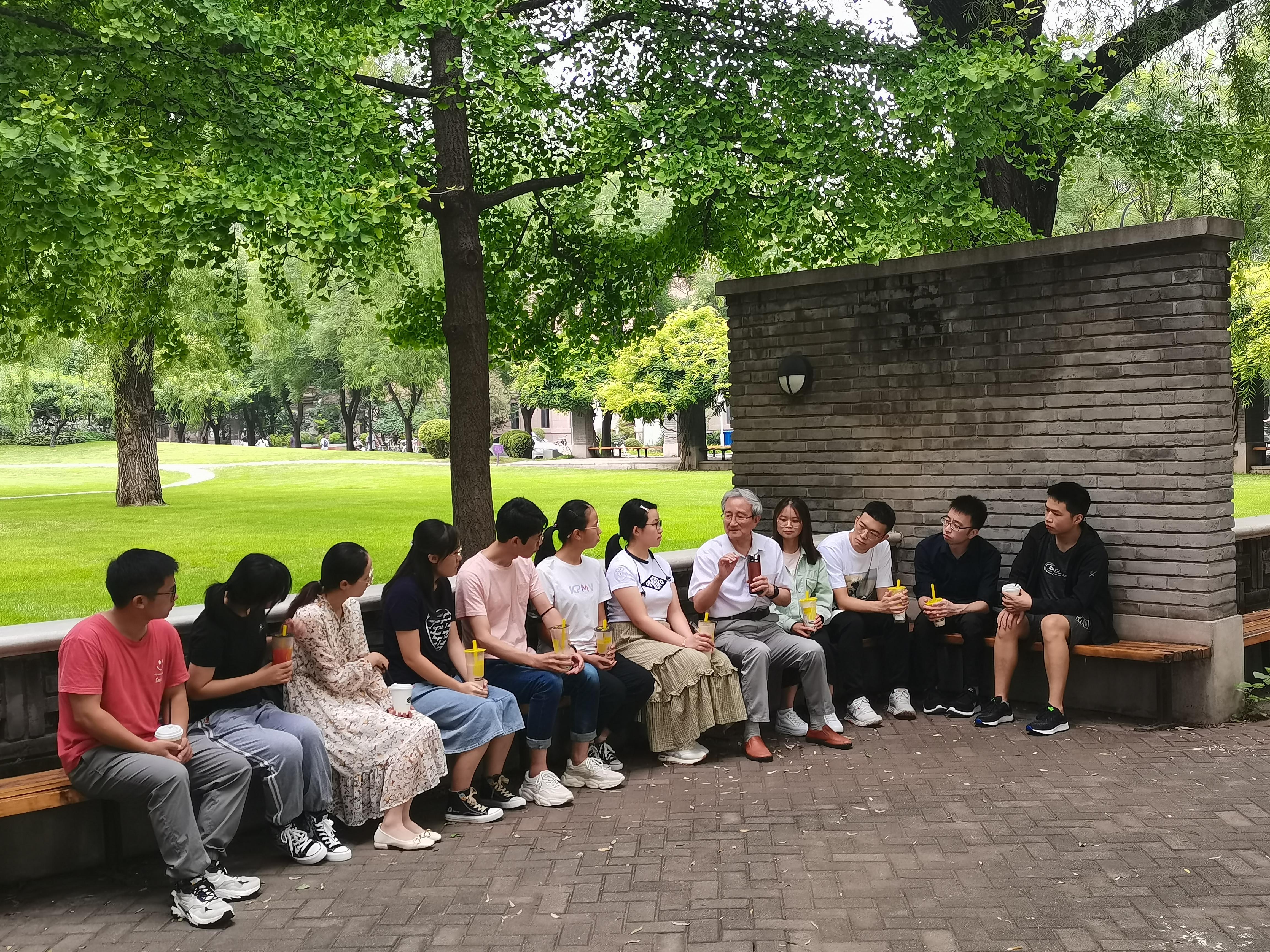 秋高气爽的午后,在风景如画的情人坡,来自不同院系的清华学子围坐在胡显章老师周围,在轻松愉快的互动氛围中,聆听胡老师讲解“我与国家同进步,与清华共转型”的精彩故事。