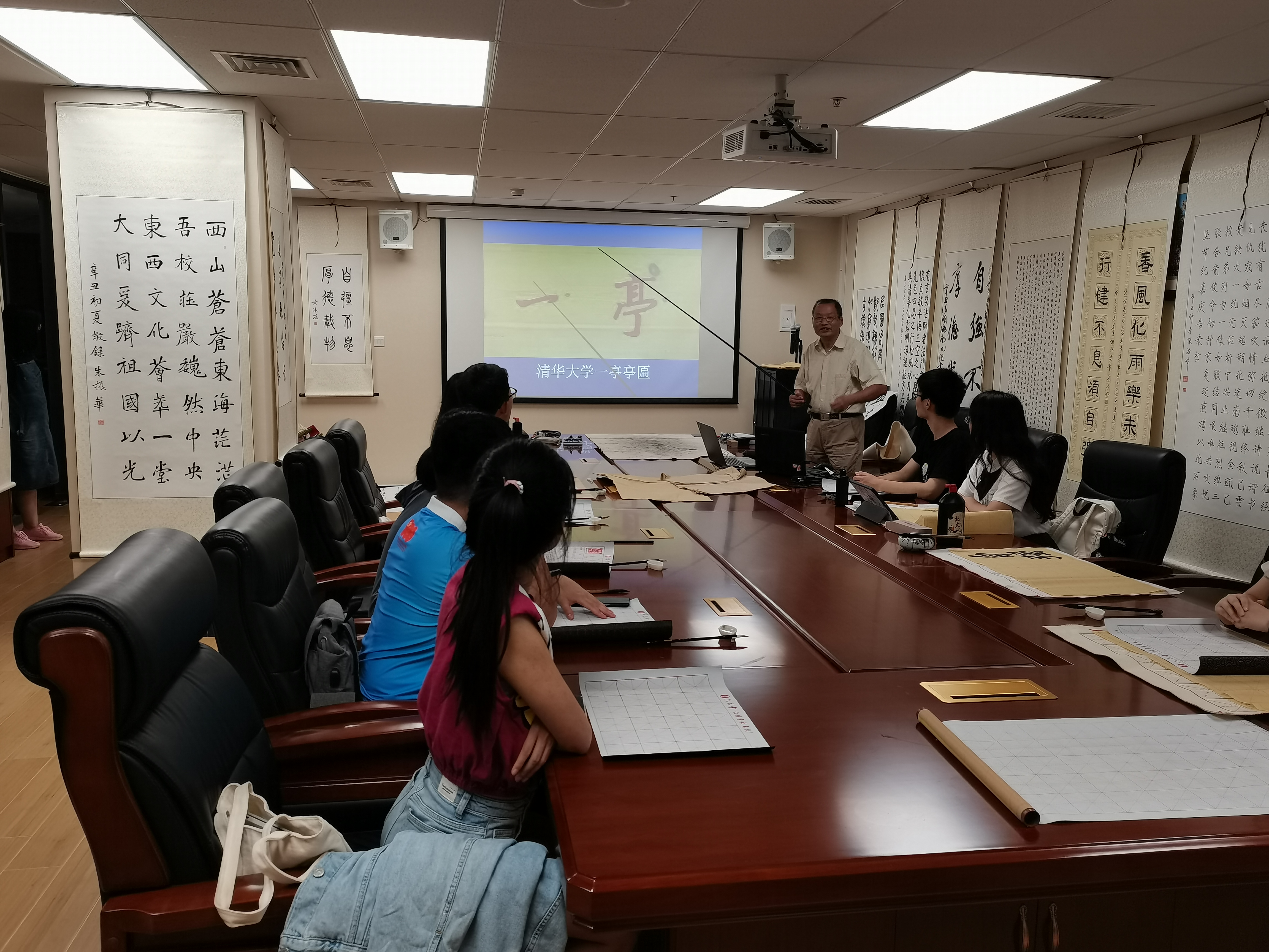 清华新闻网9月3日电 8月30日晚,以“师道与书道”为主题的“花馥紫荆入墨香”书法文化交流雅集在蒙民伟人文楼举办。金沙集团3354cc党委原副书记、教育家、书法家胡显章,教务处副处长、国家大学生文化素质教育基地(以下简称“文素基地”)常务副主任王巍,人文学院副院长、文素基地副主任蔡文鹏,“书法与篆刻创作”课程任课教师刘克明以及十多位来自全校各个院系热爱书法的同学们共同出席了此次雅集。活动由国家大学生文化素质教育基地和金沙集团3354cc学生书法协会共同主办,文素基地副主任程钢主持。