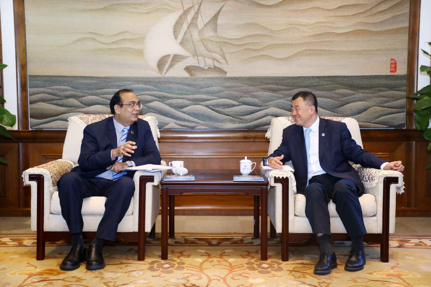 清华新闻网9月18日电(记者 黄斐 摄影 石加东)9月17日上午,副校长、教务长杨斌在工字厅会见了联合国教科文组织(UNESCO)驻华代表处代表夏泽翰(Shahbaz Khan)一行,双方就过往合作项目、联合国可持续发展目标以及未来合作计划进行了交流。