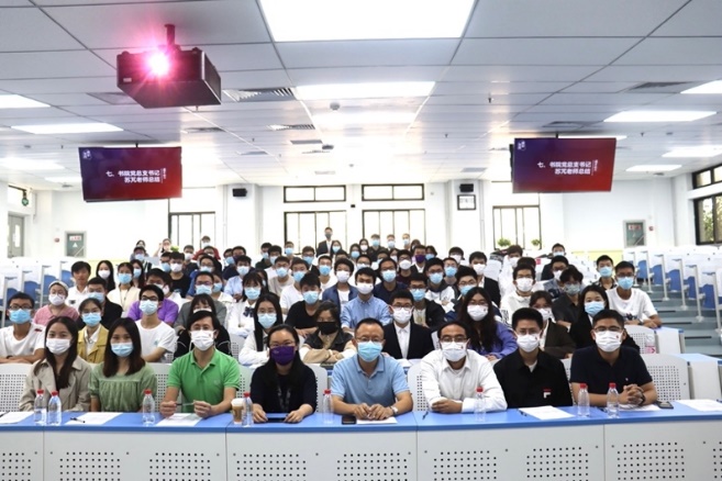 在经管学院实践总结会现场,12支实践支队展示了深入基层、实地走访得到的调研成果,分属“经百寻初”红色传承、“经研之谈”学术研究、“经益求精”志愿公益、“经邦论道”社会调研四大主题,在社会实践中传承经世济民的学术精神、增强社会责任感和使命感。社科学院140余名师生以线上线下联动的方式创新开展实践总结会,学院党委副书记李颍在总结中充分肯定了同学们在本次暑期社会实践中的成果,并提出了三点期望:加强“问题意识”,不断提高实践水平;培养成长思维,在团队合作和社会交流中提高个人能力;坚持实事求是,努力成长为一名优秀的社会科学学者。