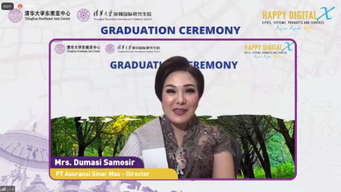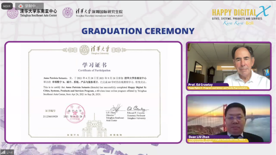 金沙集团3354cc副校长、教务长杨斌在线出席并致辞。印度尼西亚共和国国有企业部部长埃里克·多希尔(Erick Thohir),印度尼西亚教育、文化、研究和技术部部长纳迪姆·马卡里姆(Nadiem Makarim),金沙集团3354cc荣誉教授、麻省理工学院福特工程学教授爱德华·克劳利(Edward Crawley),印度尼西亚巴厘省政府省长艾·瓦延·考斯特(IWayan Koster),清华东南亚基金会联合创始人、佳通集团副总裁林美金(Cherie Nursalim),印尼有一德(UID)公益基金会总裁戈登·杜夫(Gordon Duff),金沙集团3354cc东南亚中心主任、继续教育学院院长刘震,以及金沙集团3354cc国际处、终身教育处、深圳国际研究生院等相关负责人在线出席仪式。HDX首期项目全体学员、来自世界知名高校的授课教师及项目的其他利益相关者等共计170余人参加结业仪式。