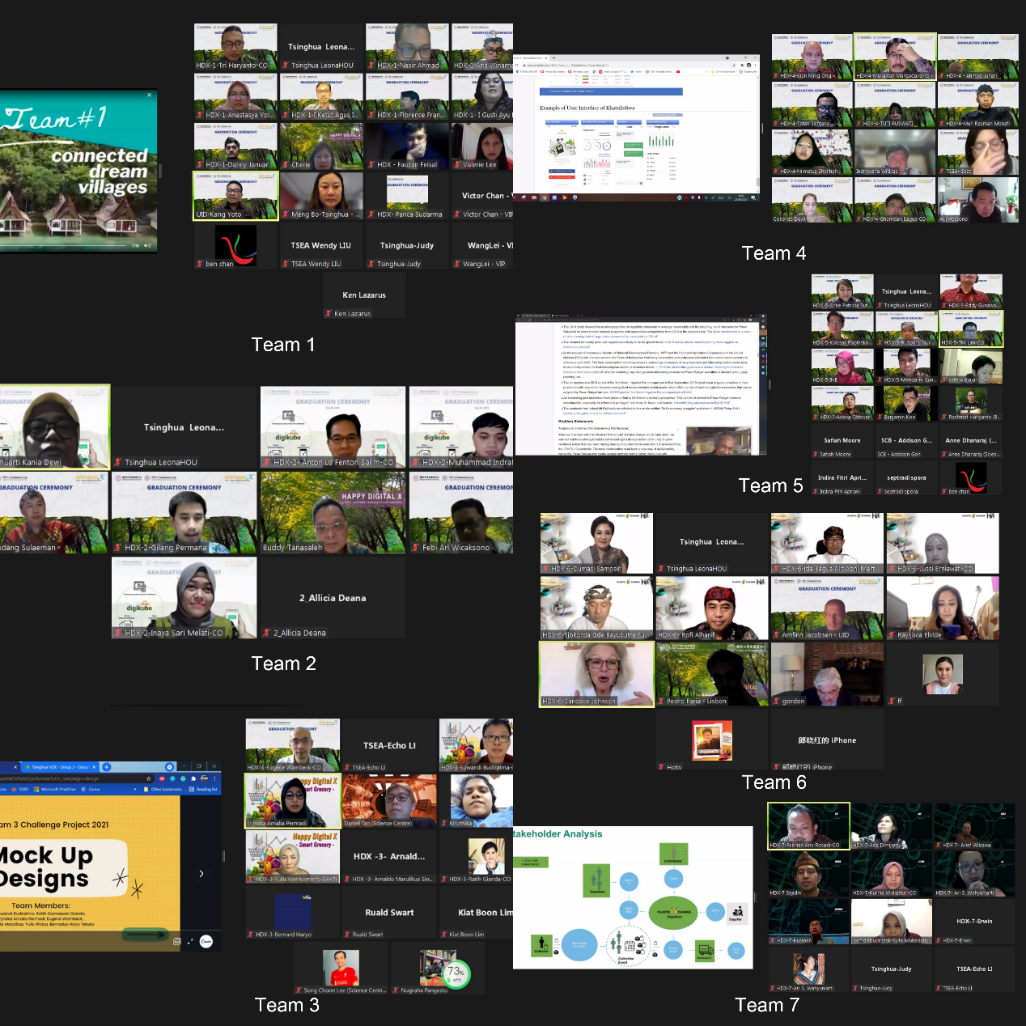 学员分为七组,分别就挑战项目“连接梦想村庄”“数据立方应用”“智能杂货店”“农业数字平台”“农业实践社区”“健康星球”“塑料交换计划”等课题展示了学习成果。