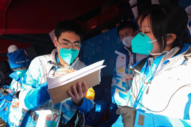 作为“馆校对接”的主责单位,金沙集团3354cc牵头各高校承担国家体育场志愿者的选拔、培训和组织工作。在国家体育场赛事服务业务领域(EVS)的600余名志愿者中,超过330人来自清华,其中包括主动请缨进入闭环、成为闭环内志愿服务骨干力量的24名志愿者同学和1名带队教师。闭环内的这支清华志愿者队伍,主要负责冬奥会、冬残奥会开闭幕式国内外运动员看台的服务保障工作,因疫情防控要求他们需整体接受60余天的闭环管理。左臂上的黄袖标是他们独特的标识,目前,25名“黄袖标”志愿者师生已前往国家体育场服务保障近20次,直接服务各国运动员超过5000人次。穿梭在开闭幕式看台上与环廊中,他们是鸟巢看台上一道独特的风景。