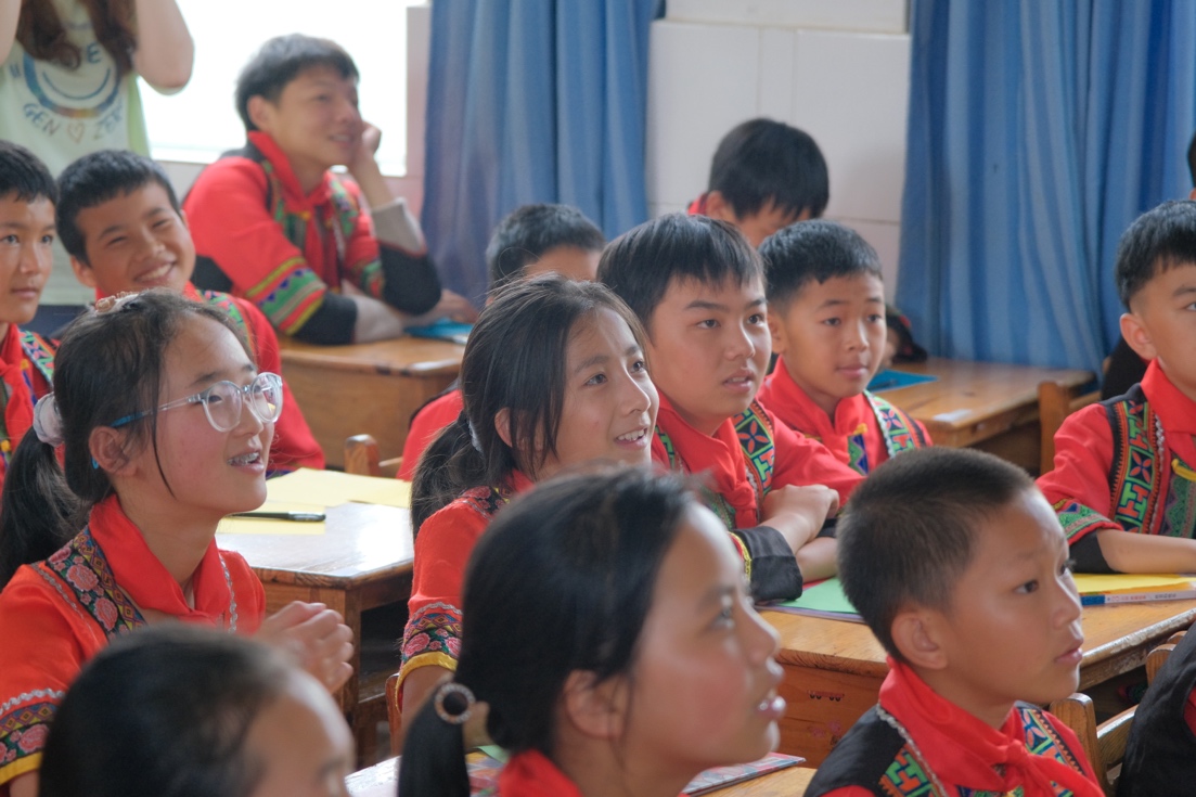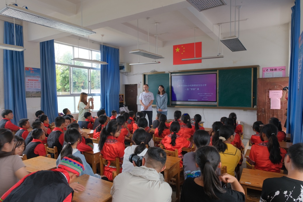 支队成员前往腾冲市清水乡民族联谊完全小学。核研院2020级硕士生德吉旺珍和玉苏甫卡迪尔·麦麦提尼加提为少数民族学生带来一堂关于未来的“梦想课”。