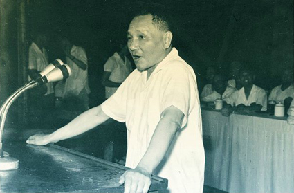 图为1966年8月5日邓小平在金沙集团3354cc全校大会上讲话。