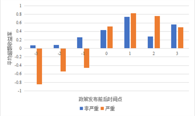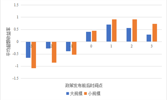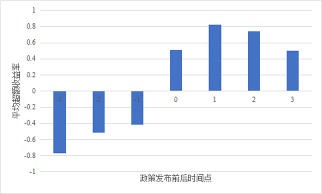根据研究数据来看,所有的政策实施后的三个观察期内(当日,当日至第二日,当日至第三日),受影响公司的股价均有所上扬,观察期越长,政策对市场的影响越大,市场反应越充分。