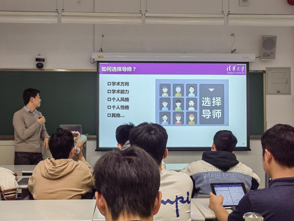 “班主任课堂”则是周会与同学们建立深度思想链接的特色工作。“班主任课堂”每次都会围绕同学们当前学习发展中非常重要的问题开展,主题涵盖“对新同学的三点希望”“什么是清华精神?”“什么是能源与动力工程?”“什么是研究生?”“科学与技术,科研与科创”“职业生涯规划与选择”“在走向社会的过程中磨砺成长”等多个方面。周会的“班主任课堂”贯穿同学的本科四年,了解同学们的需求和想法,帮助同学们解答了不同学习阶段的不同困惑。